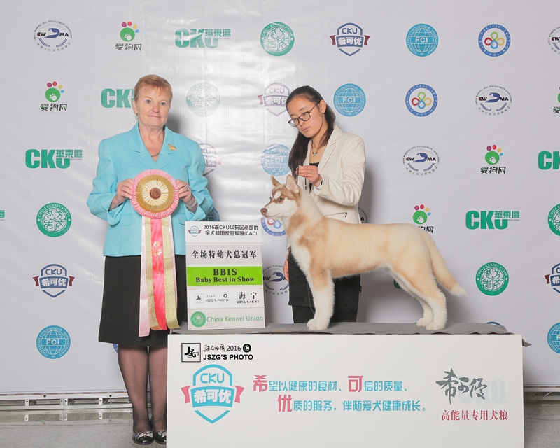 | 2016-01-17/17 | 2016年CKU華東區(qū)希可優(yōu)全犬種國(guó)家冠軍展(CAC)1月17日 | 038 | BPBIS 1 | 特幼母犬組 | (澳大利亞)Sue Bruno 蘇·布魯諾 | ||||